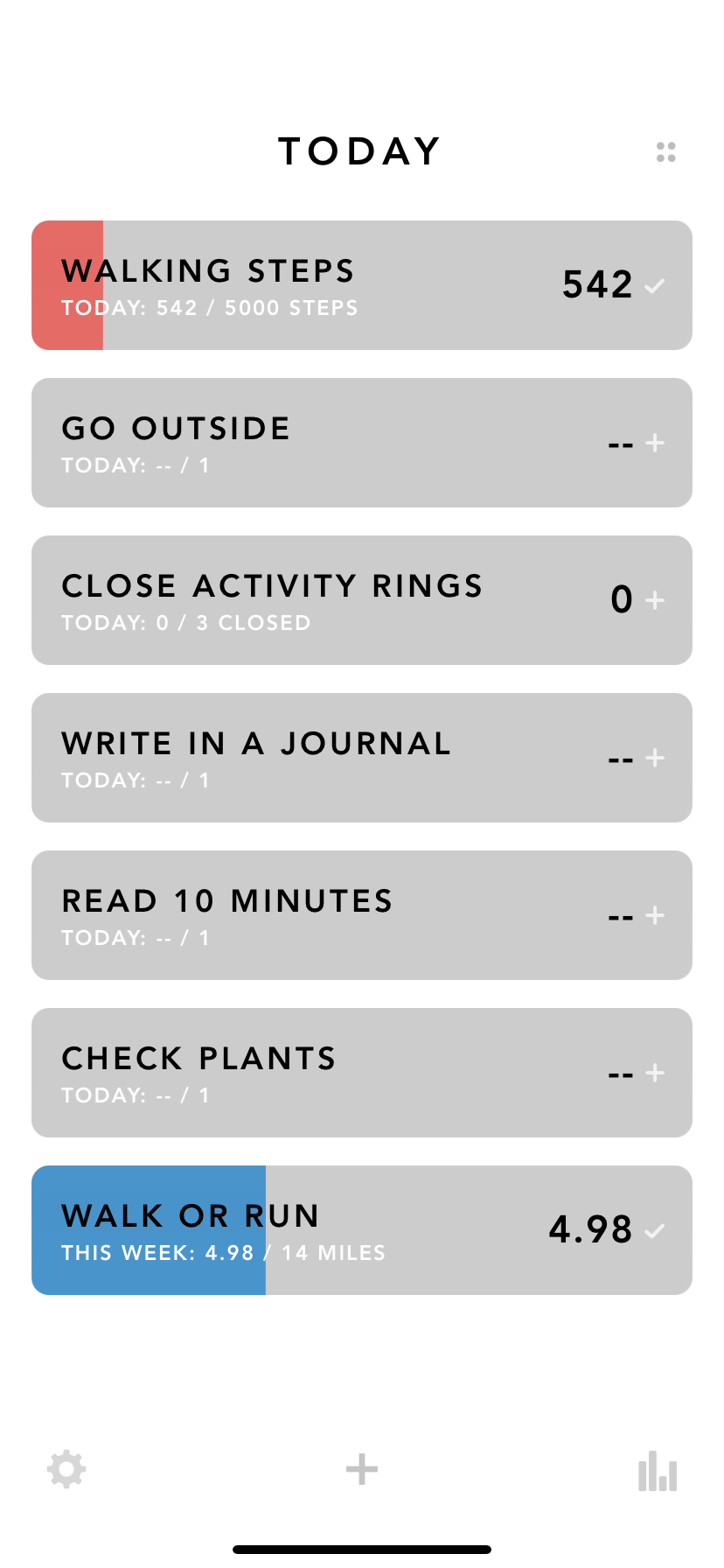 I work from home, so I am constantly looking at a computer or phone all day, most days. I’ve found that when I don’t get outside enough, move my body enough, or nurture my mind enough that I don’t feel good. So every day I have these as a reminder to myself to do the things that make me feel at my best and rest. They’ll likely change with time, especially as they become more habitual, but it works for me right now.